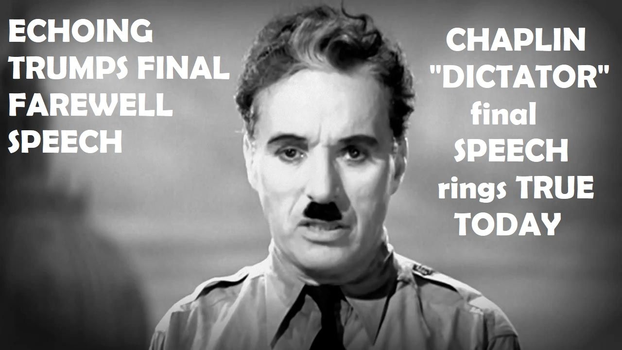 Chaplins "DICTATOR" Final Speech Echoing TRUMPS FAREWELL SPEECH