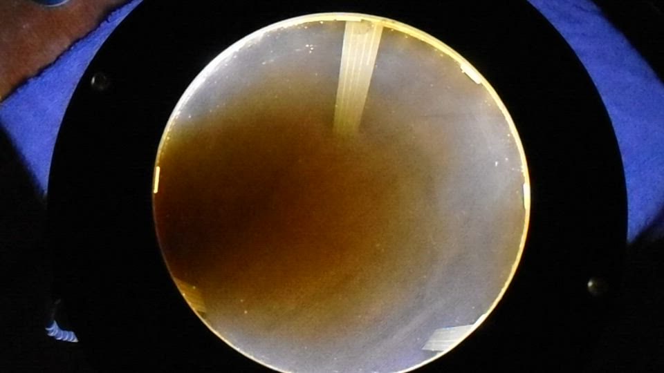 Large speaker magnet under a Ferrocell magnet field viewer