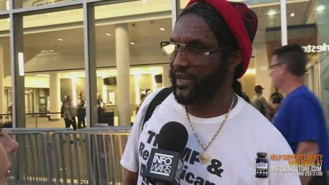 Infowars reporter Millie Weaver interviews a young anti-Trump protester about what he thinks 'Make America Great Again' means. The anti-Trump protester asserts that he believes the phrase means 'make America white again'. Later, when Trump rally attendees are asked what 'Make America Great Again' means to them, they almost unanimously agree it means to make America's economy stronger and to bring back jobs.