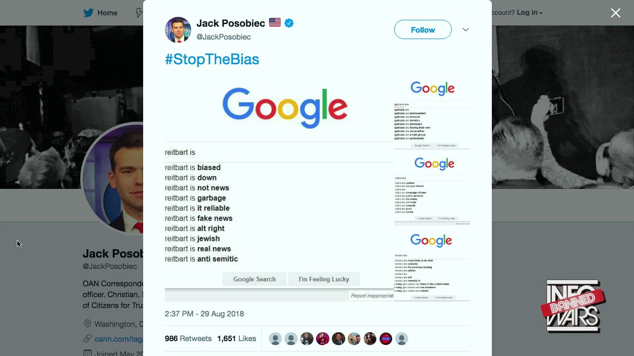 Owen Shroyer explains how President Trump has begun exposing the bias of Big Tech by tweeting out the hashtag: #StopTheBias. Patriots are taking their own screenshots of bias to prove the MSM is lying when they claim no one is being censored.