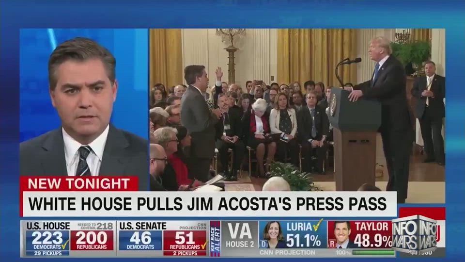 Alex Jones presents video footage that clearly confirms the actions of CNN's disgraced reporter, Jim Acosta, as he attempts to forcefully wrestle the White House Press Briefing microphone away from one of the moderators of the journalists' gathering.