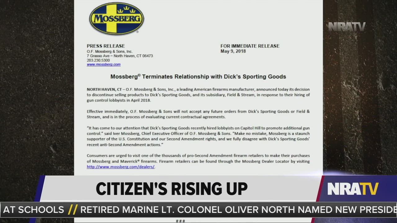 "Mossberg's like 'hey daddy-o, we ain't selling you nothing no more.' Mossberg terminates relationship with DICKS...God bless you guys. Nice work. Mossberg, I really appreciate that." —Dan Bongino