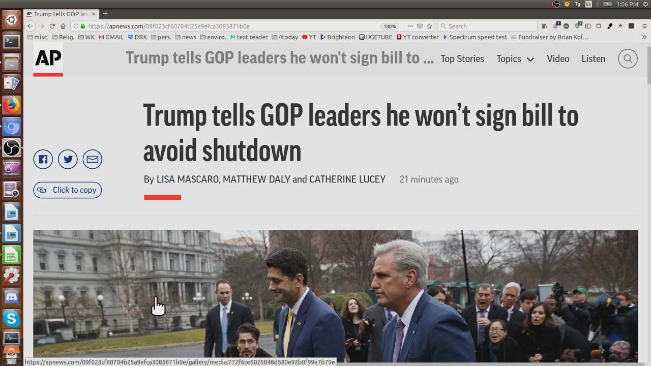 Trump tells GOP leaders he won’t sign bill to avoid shutdown