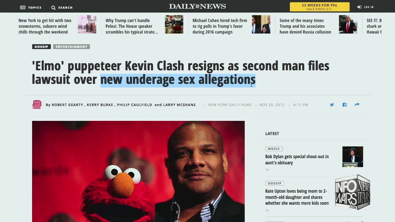 Alex Jones discusses how the voice actor and puppeteer for Sesame Street's Elmo character has been accused multiple times of sexual assault, yet somehow people are surprised that someone working on a children's television program would molest underage men.