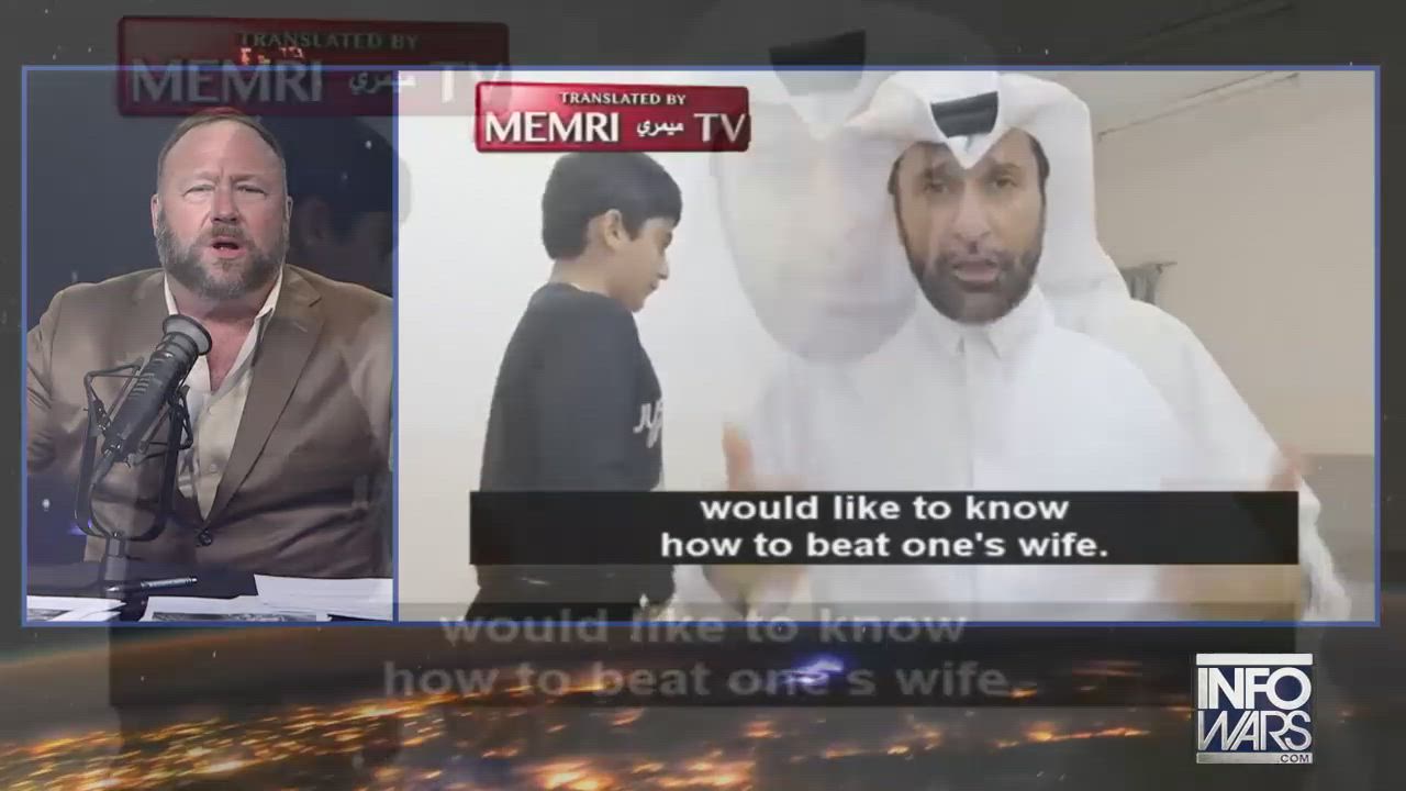 Alex Jones presents a video that YouTube and Twitter have graciously allowed to be posted on their social media sites, meaning it does not seem to break their community guidelines, where a Muslim man and a young boy teach the audience how to properly beat your wife and assert your masculine dominance over her.