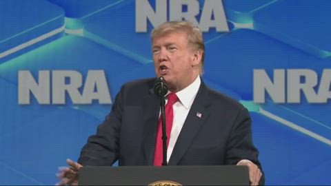 President Donald Trump vowed to fight for gun rights as he addressed the National Rifle Association Friday and also recited a litany of grievances about the special counsel investigation and Democrats, who he said "want to take away your guns."