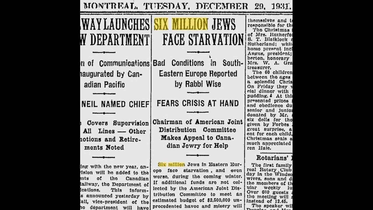 Ten Prominent Papers Read "Six Million Jews Persecuted" early as 1915 to 1938