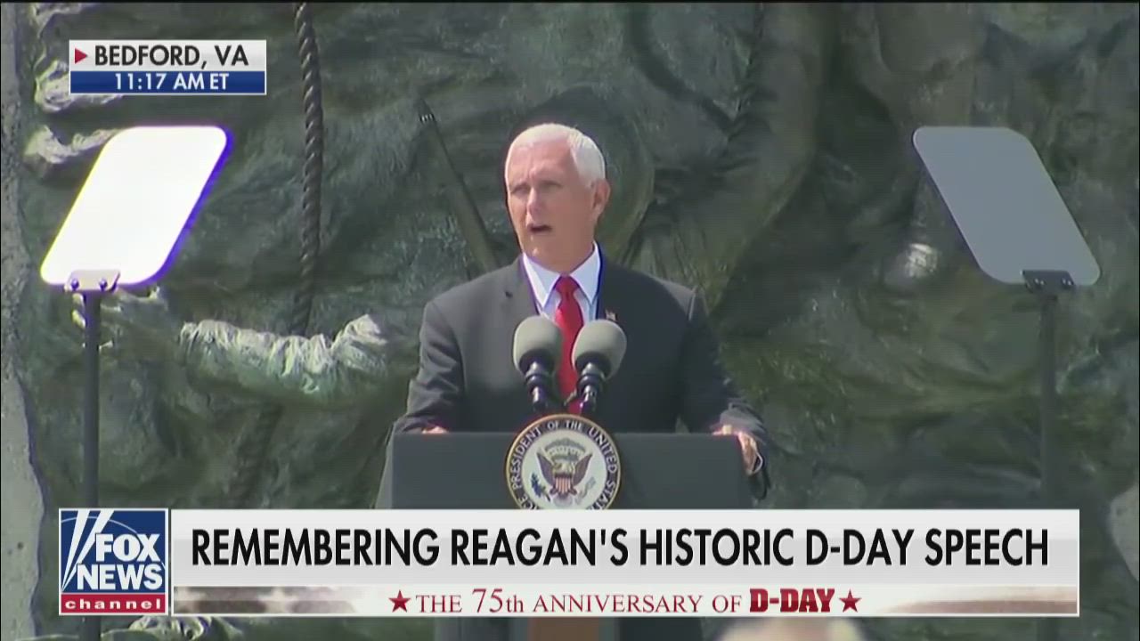 Mike Pence delivers remarks at the National D-Day Memorial in Bedford, Virginia.