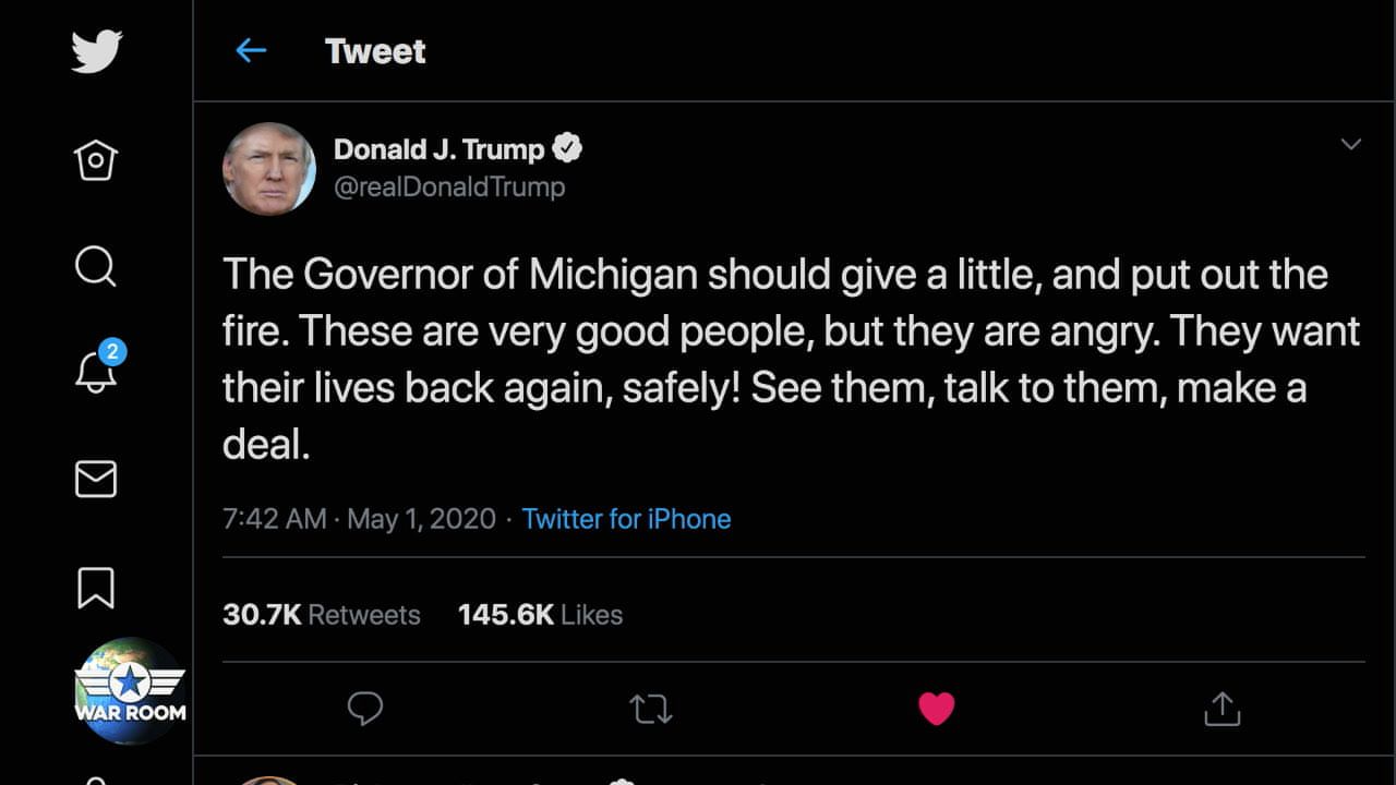 Trump Tweets Support For Armed Michigan Protestors