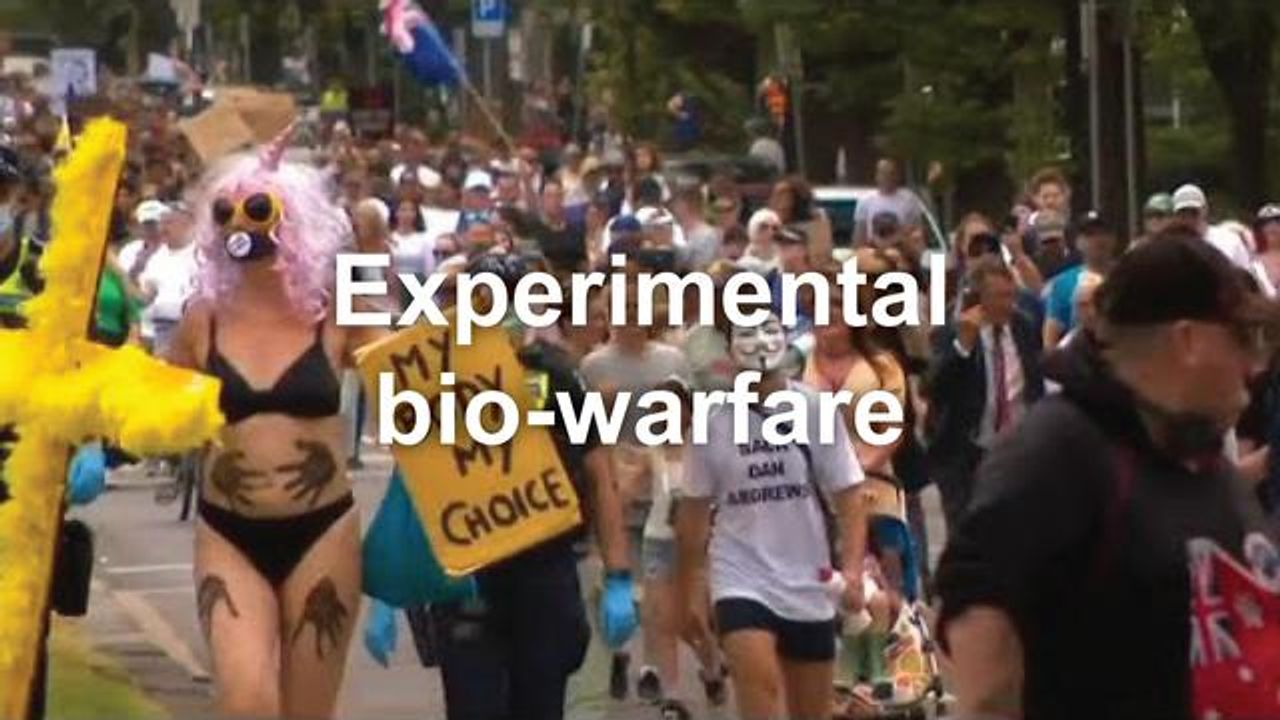Anti-vax protesters in Melbourne described the coronavirus vaccine as “experimental bio-warfare” during a rally which resulted in at least 20 arrests.