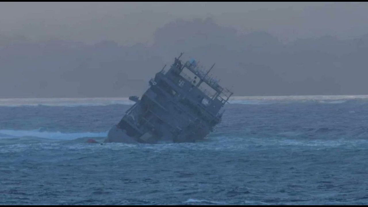 New Zealand Navy Ship HMNZS Manawanui Sinks After Running Aground Near Samoa. Fire was coming from it as it sank.