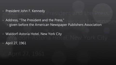 *Address, "The President and the Press," Before The American Newspaper Publishers Association, 27 April 1961, is pubic domain content.*