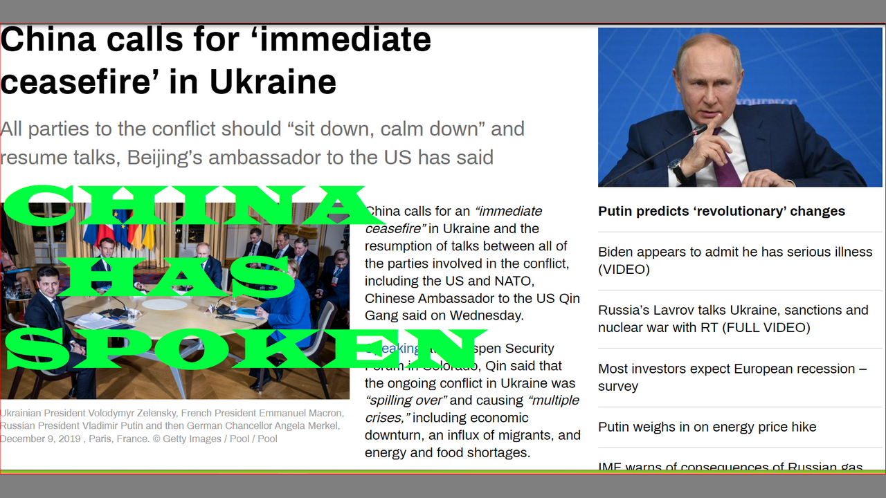 CHINA HAS SPOKEN CALLING FOR IMMEDIATE CEASE FIRE IN UKRAINE~! PUTIN PREDICTS MULTIPOLAR WORLD OF INDIVIDUAL FREEDOM = YOU ARE FREE REJOICE~!https://www.rt.com/russia/559352-china-ambassador-ukraine-ceasefire/