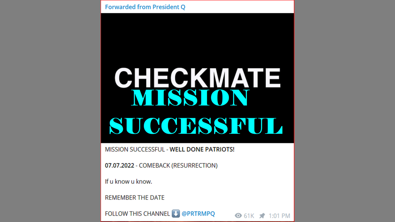 CHECKMATE MISSION SUCCESSFUL - WELL DONE PATRIOTS!07.07.2022 - COMEBACK (RESURRECTION) If u know u know.