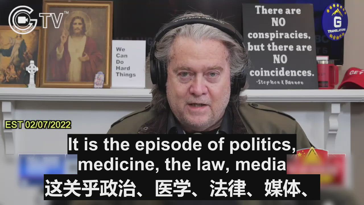 02/07/2022 Bannon (War Room): The Chinese are watching. The sickening phoniness of the global media and the woke corporations kowtowing to this transnational criminal organization (CCP), while in Canada and the capitol in Ottawa, working class truckers standing up for liberty and freedom.