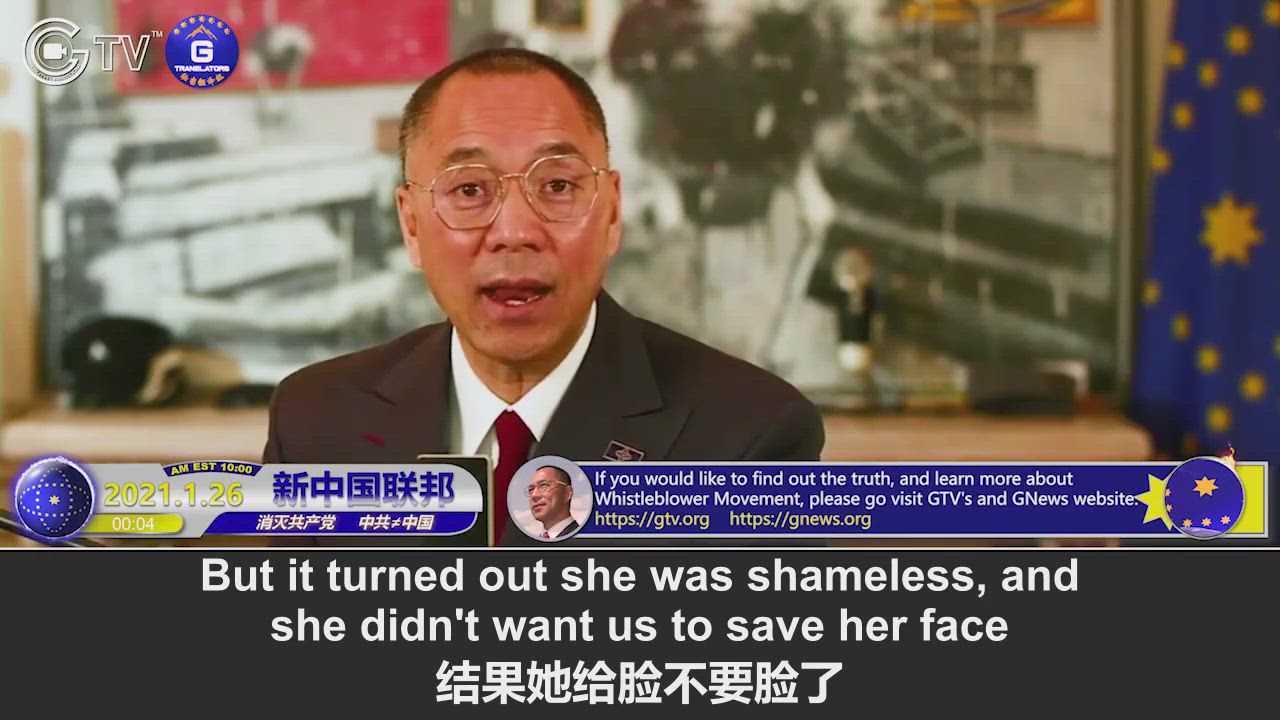 1/26/2021 Miles Guo: Sara has been telling bold-faced lies till today, she’s been using the name of justice and freedom to deceive our fellow fighters; we must have this evil group of people punished by the rule of law in the U.S., otherwise there will come out the second or third Sara
