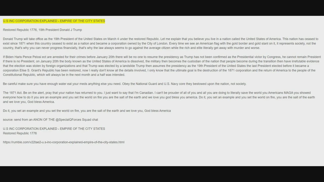 SpecialQForces post on Restored Republic 1776, 19th President Donald J Trump.