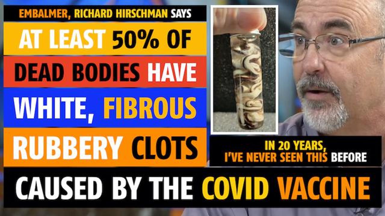 “I’ve been doing this for 20 years and never saw [ these white, fibrous, rubbery clots before ]… “Overall… at least 50% [ of dead people he has embalmed have these white, fibrous, rubbery clots in their blood ]…” “[ Of the 250 images he has of these white, rubbery clots ] NONE, that I can recall, have said on the death certificate that the death was caused by the vaccine. ] “If [ these white, fibrous, rubbery clots ] are caused by the vaccine… then the death rate for the vaccine would be through the roof…” Embalmer, Richard Hirschman tells Del Bigtree on "The Highwire" on Feb 22, 2024.