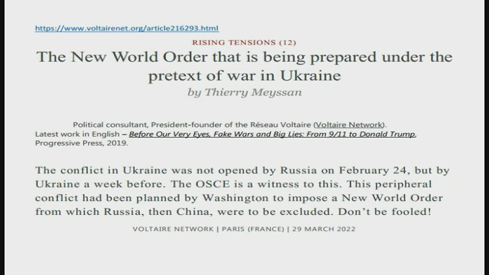 The New World Order that is being prepared under the pretext of war in Ukraine by Thierry Meyssan