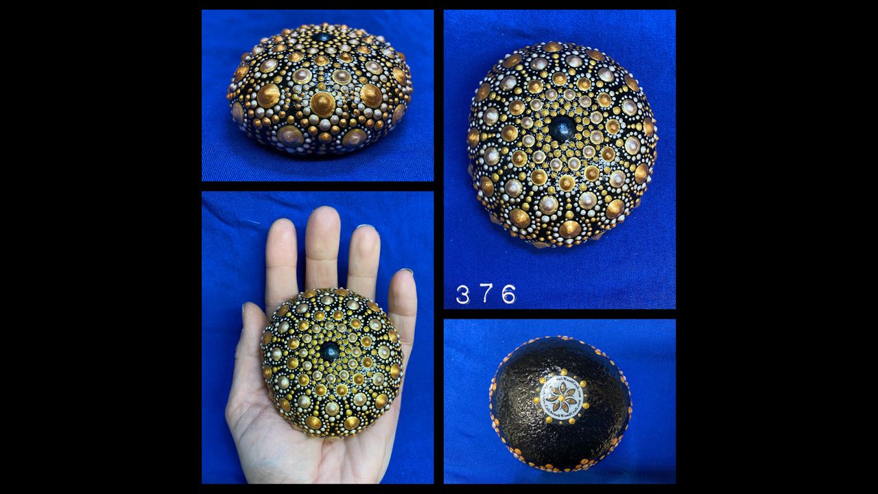 Process Demo of a hand painted natural river rock. Music by Stick Figure; Ruffwood Records