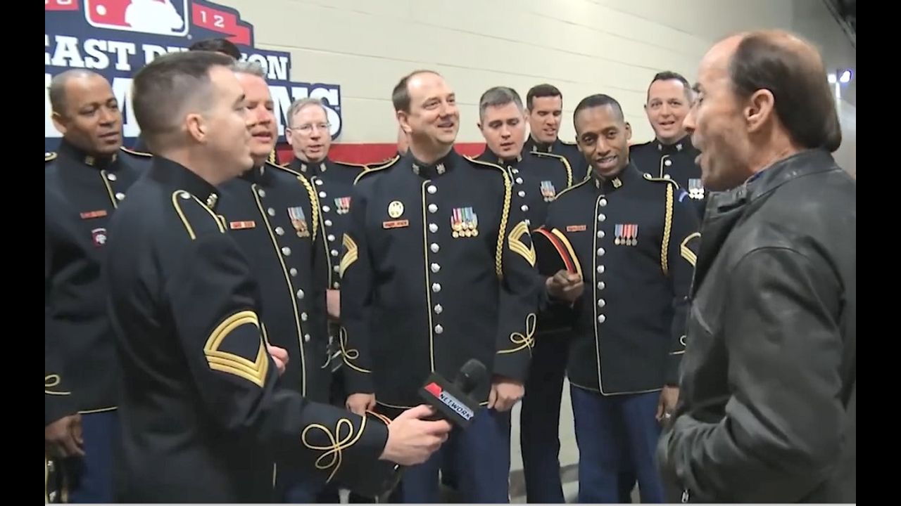 Army Chorus and Lee Greenwood sing acapella, God Bless the USA, impromptu at the 2015 Winter Classic, in the tunnel