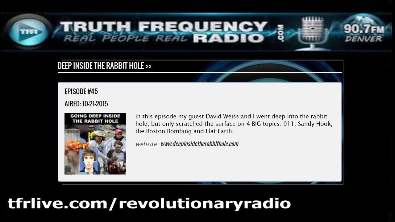 In this episode my guest David Weiss and I went deep into the rabbit hole, but only scratched the surface on 4 BIG topics: 911, Sandy Hook, the Boston Bombing and Flat Earth.