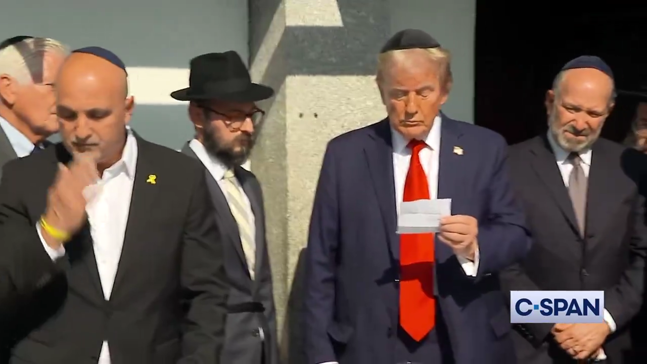 Disclose.tv - NOW - Trump, prays at the tomb of Lubavitcher Rebbe Menachem Mendel Schneerson in Queens, New York.