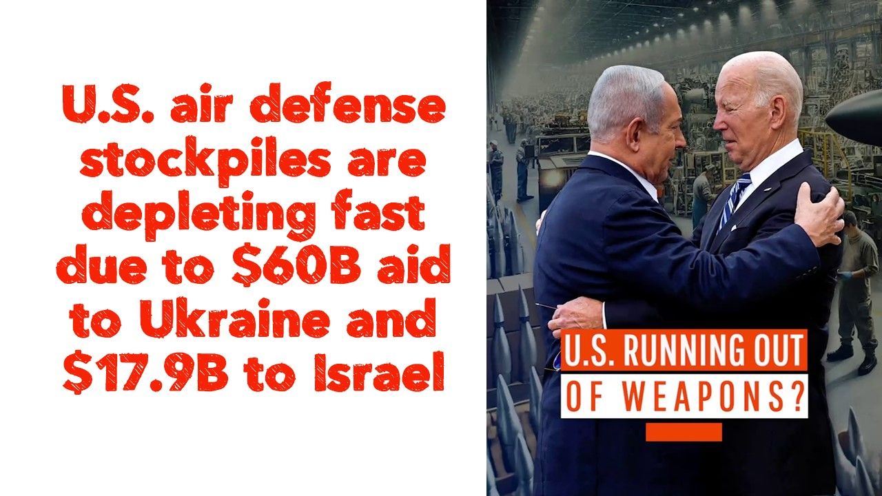 U.S. air defense stockpiles are depleting fast due to $60B aid to Ukraine and $17.9B to Israel. Key systems like Patriot and THAAD are deployed, raising concerns about readiness for future threats.
