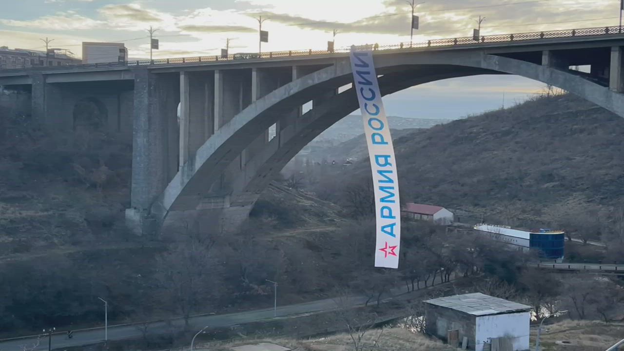 'LARGE BANNER DRAPED FROM HIGH BRIDGE - "Support Action of the Russian Army in Armenia". 022822