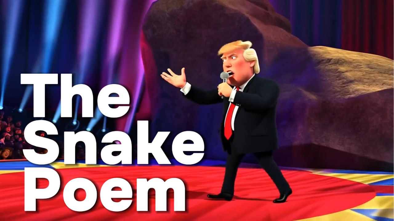 Step into a world of humor, satire, and slick animation as we bring Donald Trump to life like never before—through Pixar-styled computer animation! Our channel presents a lighthearted and creative twist on Trump’s iconic recitation of "The Snake," the amusing and symbolic tale of a woman who rescues a half-frozen snake, only to learn the age-old lesson of betrayal.