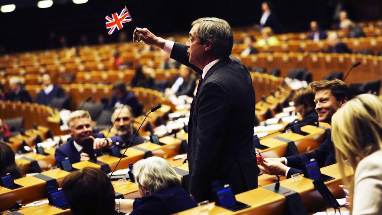 Nigel Farage Waves EU Goodbye With Union Jack