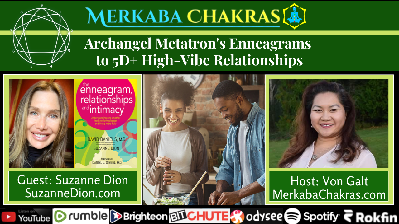 Welcome to another episode of Merkaba Chakras. I’m your host, Von Galt. Today, we dive into what THE ENNEAGRAM is about and how we can use this map of human personality development to attract the most loving-soulful relationships with those we love. Co-Author with David Daniels, M.D., of “The Enneagram, Relationships, and Intimacy”. Mrs. Suzanne Dion, welcome to Merkaba Chakras!