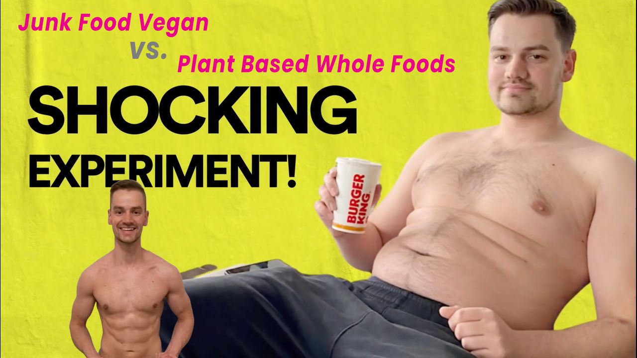 Healthy vs Unhealthy Vegan: SHOCKING Experiment. Vegan Trainer Andrew Roberts Purposely Gains 55 Pounds by eating junk food vegan foods in 6 months.. Then he loses it all in the next 6 months on a Vegan Whole-Food Plant Based Healthful Diet.