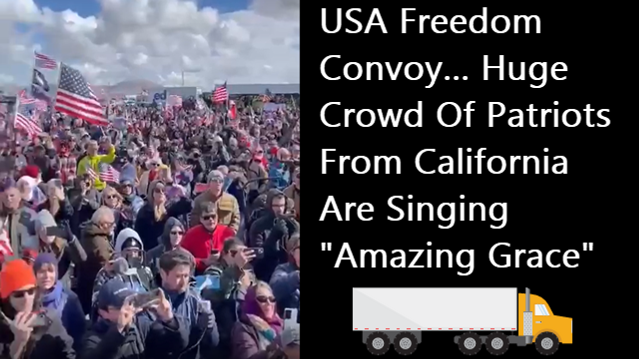 USA Freedom Convoy... Huge Crowd Of Patriots From California Are Singing "Amazing Grace" 🇺🇸🇺🇸🇺🇸
