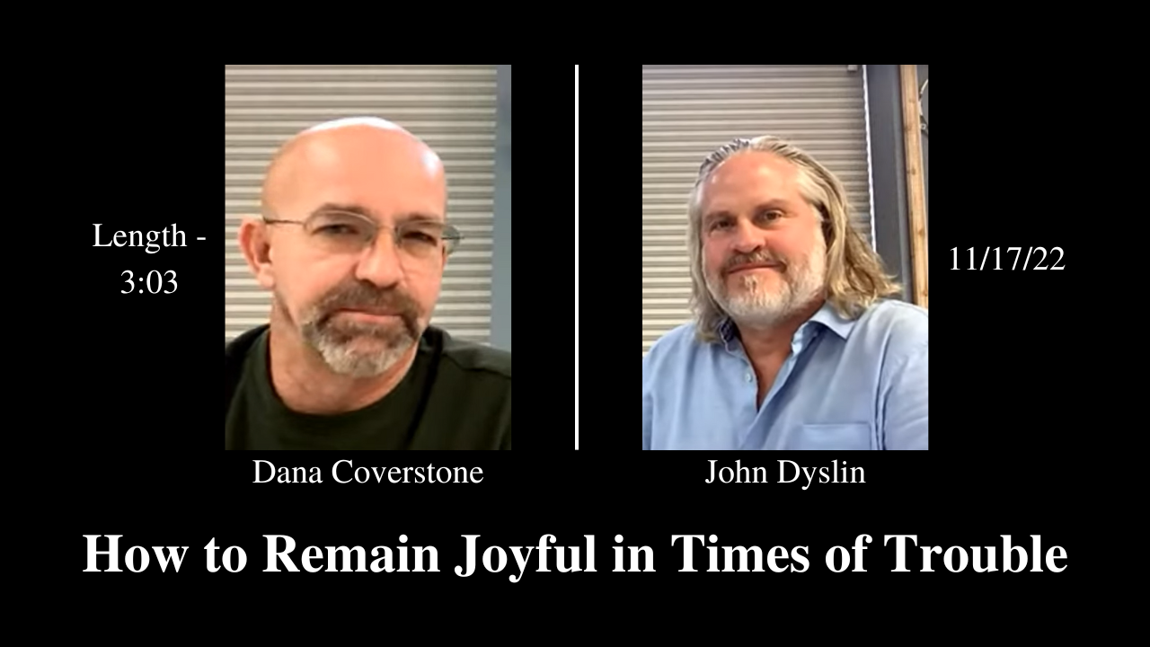 In this video John Dyslin, author of Nehemiah Strong, speaks with Pastor Dana Coverstone about a critical requirement for remaining joyful when it seems there's no joy to be had. Nehemiah 8:10 says, "The joy of the Lord is our strength," so as the darkness creeps in from all sides we need to pursue the Lord, who is our source of joy, all the more.