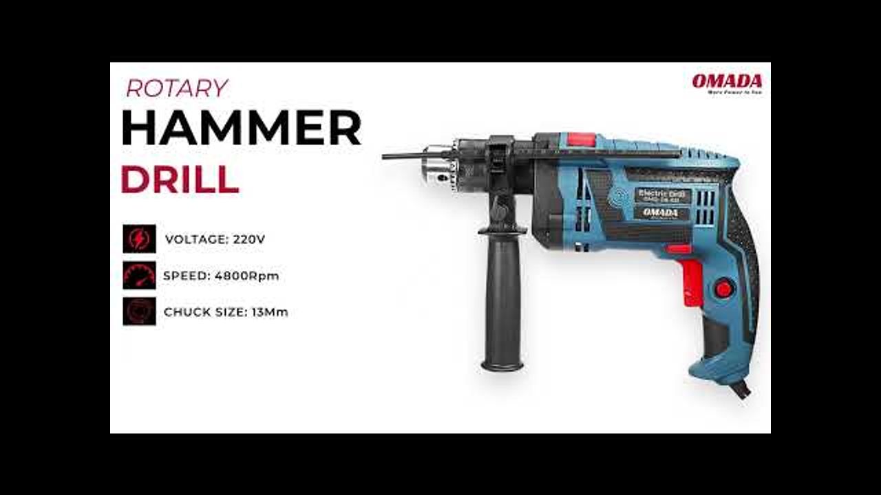 Unleash the power of the OMADA Corded Hammer Drill, featuring a 2.8 Amp copper core motor and variable speed control (0-4800 rpm) for ultimate performance. Designed for drilling through steel, plastic, wood, and brick walls (not for reinforced concrete), it ensures precision and efficiency. With a durable 1/2" (13mm) metal chuck, rotating auxiliary handle, and lightweight 3 kg design, this drill offers superior control and comfort for any task.