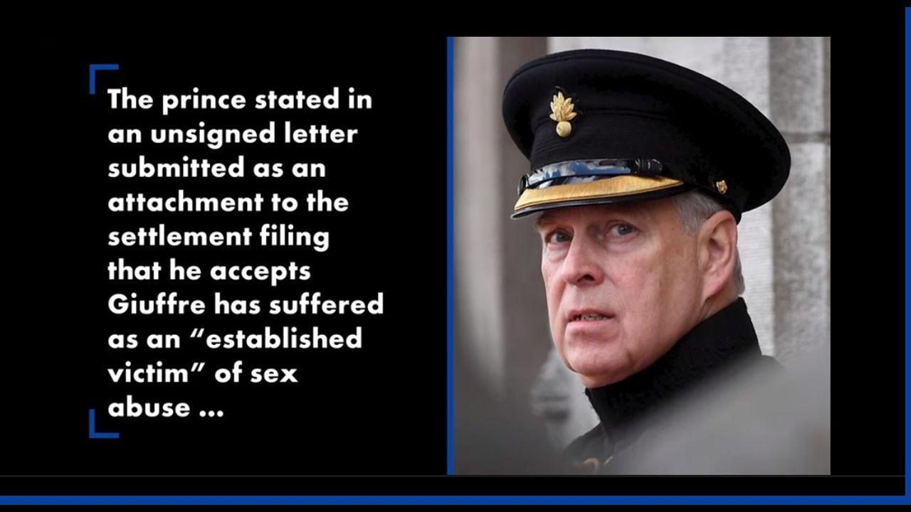 In an unsigned letter submitted as an attachment to the settlement filing, Andrew said he accepts Giuffre has suffered as an “established victim” of sex abuse.