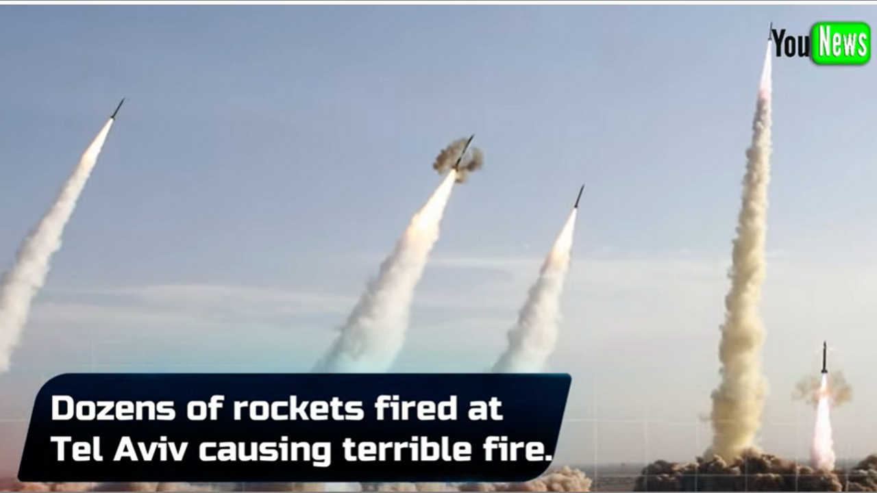 Dozens of MISSILES fired at Tel Aviv causing terrible fire.