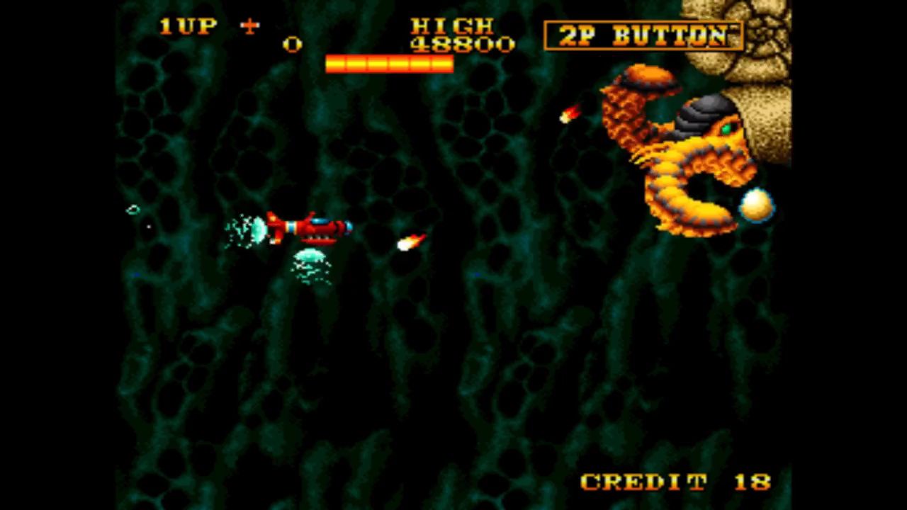 While you standard shot is only forward, you can collect an item which equipped your plane with satellite. You can circle the satellite freely around your ship. Depending on its position, it will shoot different shots. For example, placing it directly under or above the plane will make it shoot vertically, while placing it to the lower right will make it drop a bomb in a 45 degree angle. The satellite can also absorb damage, but it is not indestructible and will break at one point.