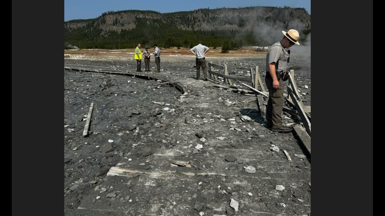 After the Hydrothermal Explosion in Biscuit Basin at Yellowstone - damage to walkway