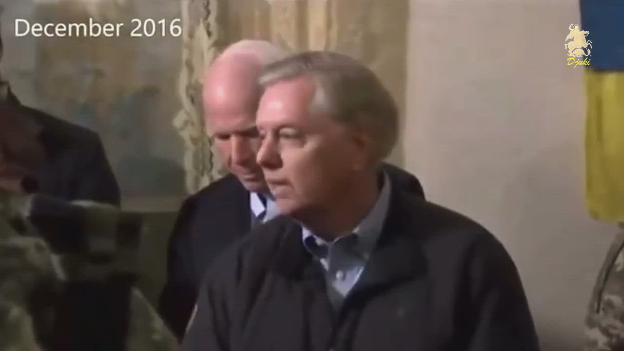 The video shows an excerpt of the meeting between US Senators Lindsey Graham and John McCain and former Ukrainian President Petro Poroshenko in 2016.