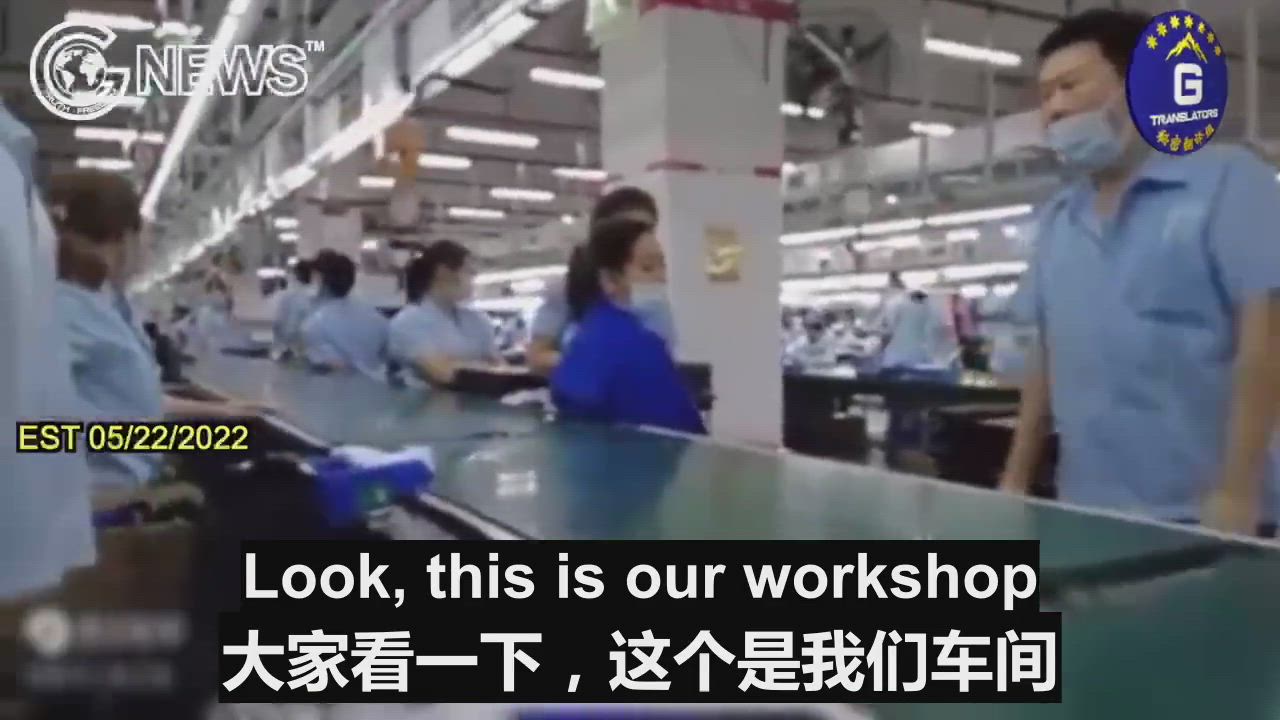 05/22/2022 A worker shows his workplace, where most product lines are closed and people have nothing to do. He didn’t know how long this situation would last.