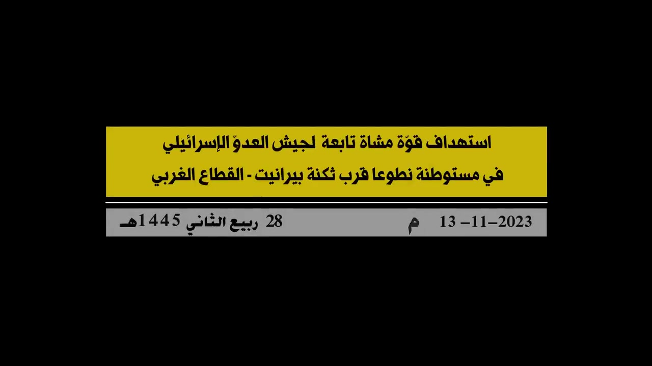 Scenes from the Islamic Resistance targeting an infantry force belonging to the Israeli enemy army in the “Natoa” settlement near the “Piranit” barracks on the Lebanese-Palestinian border.