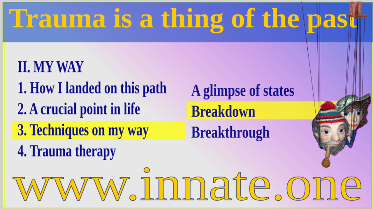 Even processes that have been paralysed for decades—karmic topics as well—may be found, understood and brought to a happy end. To restrict the use of the term trauma to broken legs and war veterans terrible experiences blinds us and blocks us from becoming healthy and happy. As it turns out, correcting one tiny word from your childhood may be a game changer. We simply need a tool to find the essence of it and a tool to mend it with. This is the INNATE Method.