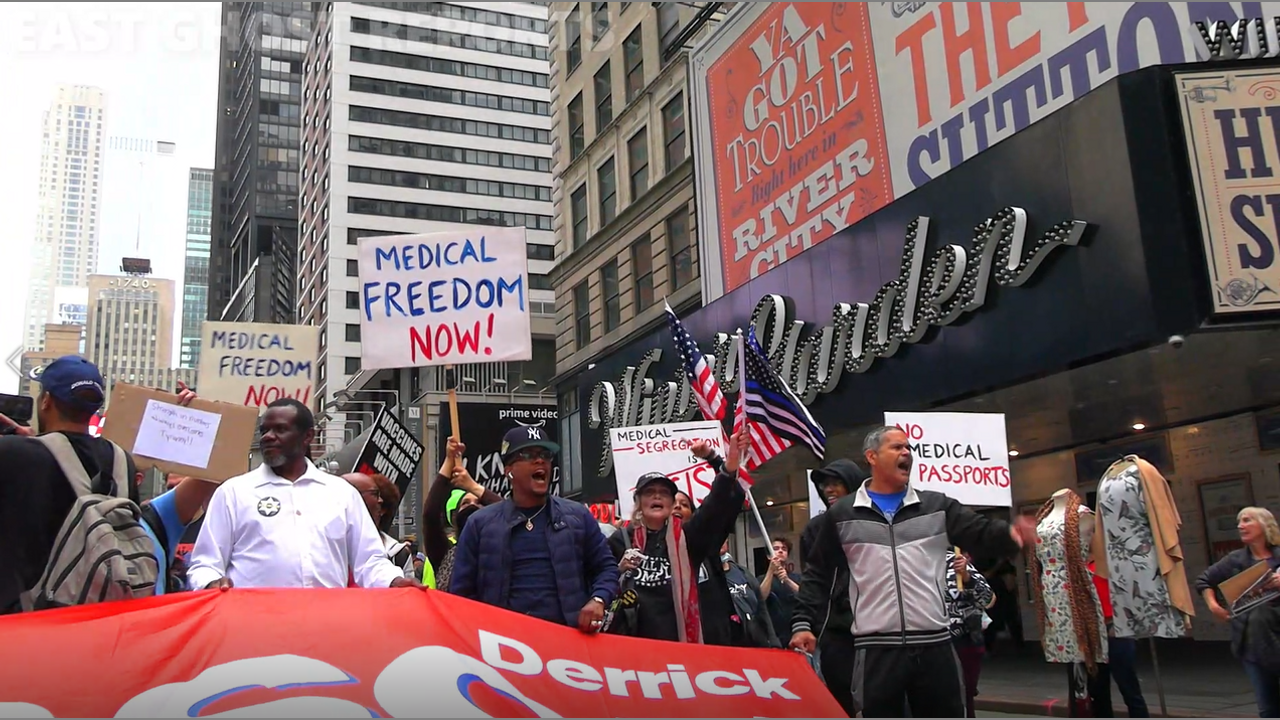 10/9/2021: March against vaccine mandates and Covid restrictions with Derrick Gibson, candidate for Governor of New York. IG: @eastghostreports