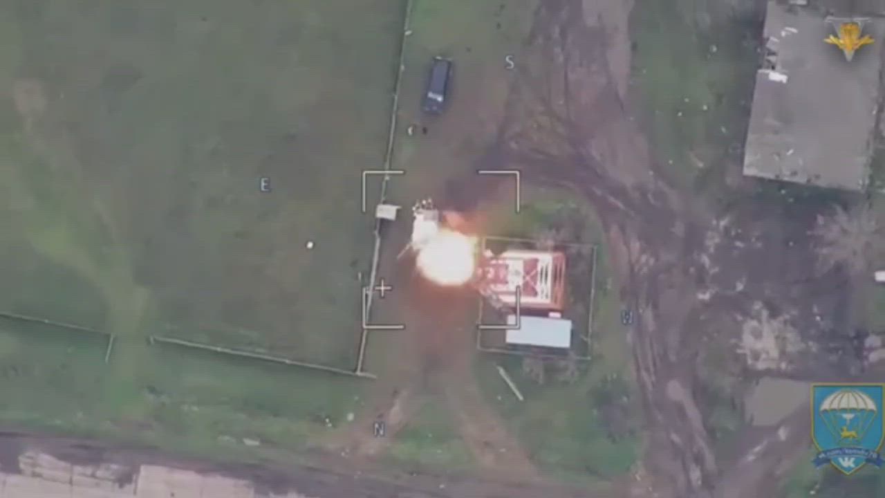 Russian kamikaze UAV Lancet striking starlink station and D20 howitzer