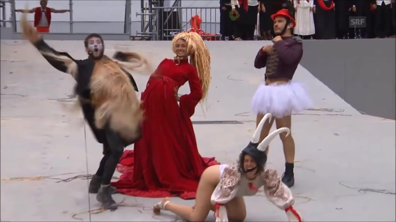I take you back a couple years to the bizarre Gotthard Tunnel ceremonies which played out more like an occult public ritual. They went all out with zombie workers, people becoming crazed and ripping off their clothes, Pan or Baphomet running around mock killing people, the Pope ushering in a slaughter of regular people for a sacrifice, a beheading, the scarlet woman or whore of Babylon, and plenty of references to a conjuring and a vortex or portal with something sinister lurking within.
