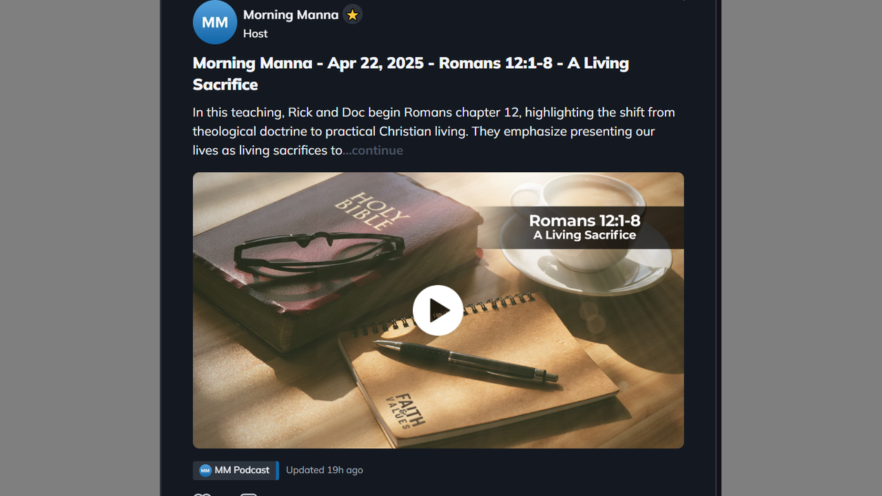 In this teaching, Rick and Doc begin Romans chapter 12, highlighting the shift from theological doctrine to practical Christian living. They emphasize presenting our lives as living sacrifices to God, not through outward ritual, but through daily choices, attitudes, and actions that reflect holiness and gratitude. The lesson deeply explores the renewing of the mind and the transformation that aligns believers with God’s perfect will. They also address how each member of Christ’s body has distinct gifts and functions, encouraging humility, sober self-assessment, and unity in purpose. Rick shares personal reflections about leaving behind news commentary to focus fully on teaching and evangelism, aligning more deeply with his God-given calling. The episode concludes with an exhortation to discover, embrace, and operate within one's spiritual gifts to glorify God and edify the church.