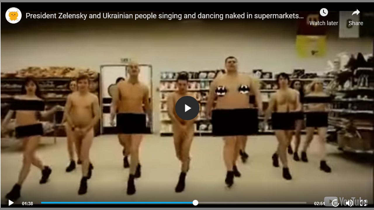 https://www.ourfreedomtube.com/watch/president-zelensky-and-ukrainian-people-singing-and-dancing-naked-in-supermarkets-music-video_h6YnoUufKXIKFet.html?fbclid=IwAR375SOzIzrCAacsJbKuVisCmngH4VGWFbKal3FKwhIuqY6nJ04x3SM89FM