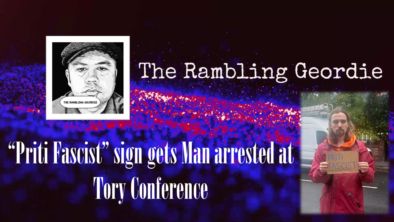 Priti Fascist sign gets Man Arrested at Tory Conference